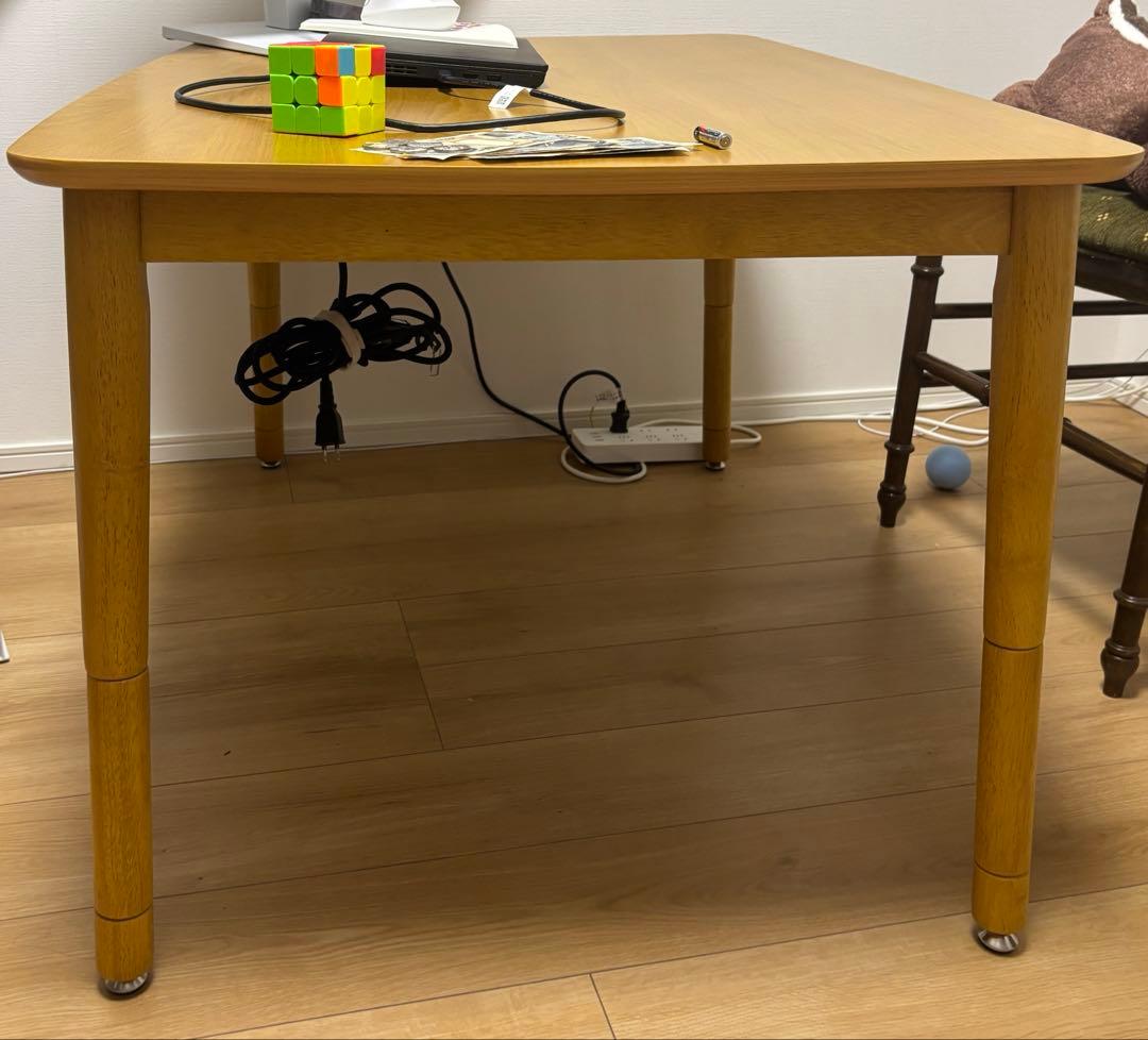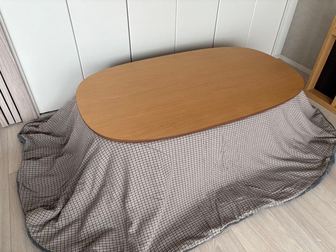 - 部屋が広くなったので、こたつも欲しいなと購入することにしました。 旦那は、早く欲しかったみたいで近くのお店で買おうとしていましたが、私が反対してネットで買うことになりました。安く買えるし、布団の柄もいい感じだったので… でも、結局来るのが遅くなったので、少し旦那は不機嫌に… 組み立ててみると、少し凹んだところを発見!! まぁ〜その後に子供が上に乗って暴れていたし、値段の安いことを思うとまぁいいかぁ〜 となりました・・・ あと、温度調節をコードのところでできないのは不便ですね・・・ でも、こたつがあるだけであったかいですね。